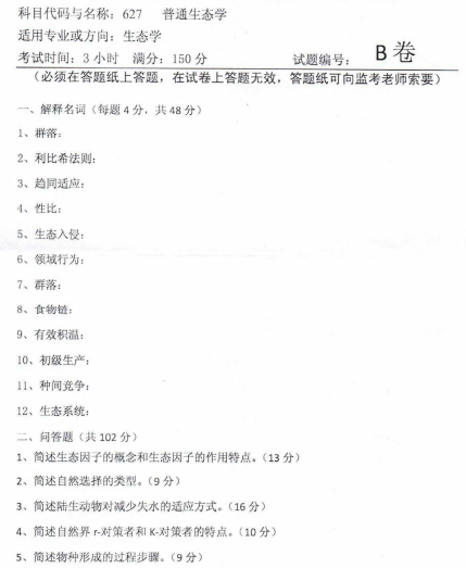 河师大考研辅导班:2018年河南师范大学考研627普通生态学真题