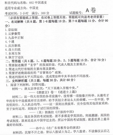 河师大考研辅导班:2018年河南师范大学考研662中国通史真题