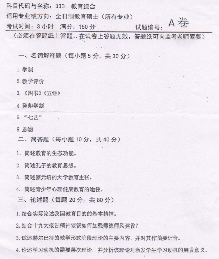 河师大考研辅导班:2018年河南师范大学考研333教育综合真题