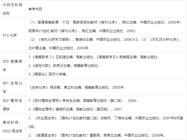 南农考研辅导班:2020年南京农业大学090402农业昆虫与害虫防治考研参考书目