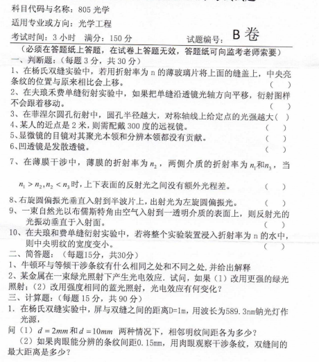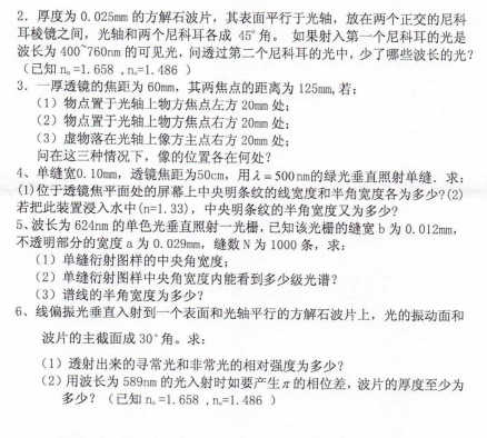 河师大考研辅导班:2018年河南师范大学考研805光学真题