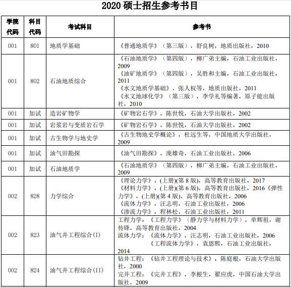 中国石油大学(北京)考研辅导班:2020年中国石油大学(北京)硕士研究生招生参考书目