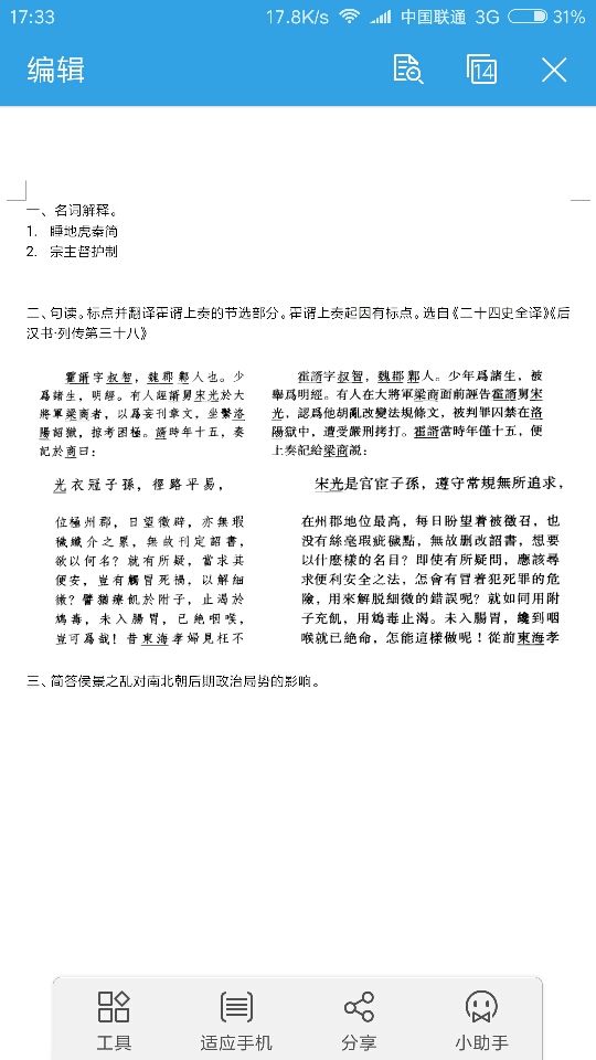 历史学考研辅导班:2018年淮北师范大学中国史考研复试真题
