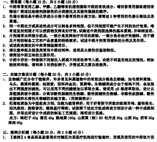 北京城市学院考研辅导班:北京城市学院2018年中药学考研初试真题