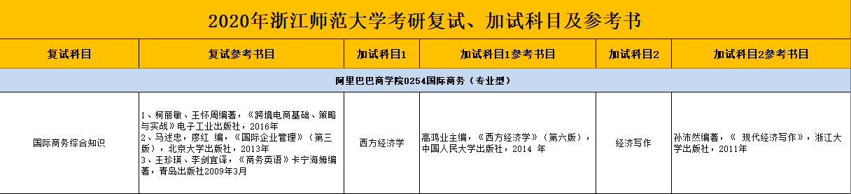 浙师大考研辅导班:2020年浙江师范大学复试参考书目-阿里巴巴商学院0254国际商务(专业型)