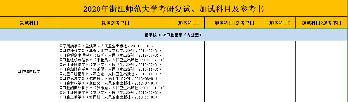 浙师大考研辅导班:2020年浙江师范大学复试参考书目-医学院1052口腔医学(专业型)