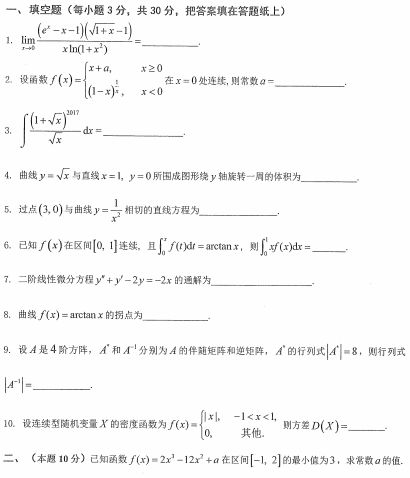 安徽师范大学考研辅导班:2018年安徽师范大学考研615高等数学一真题