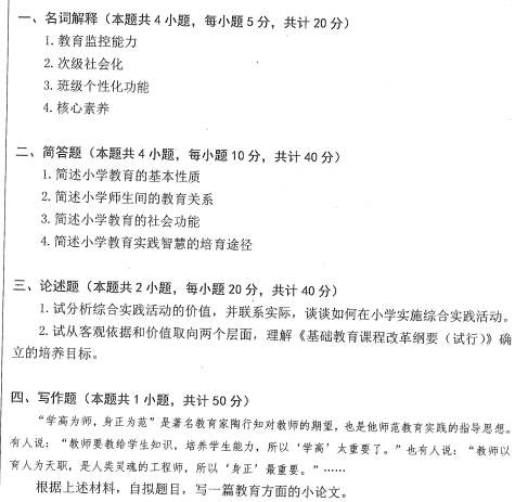 安徽师范大学考研辅导班:2018年安徽师范大学考研826小学教育学真题