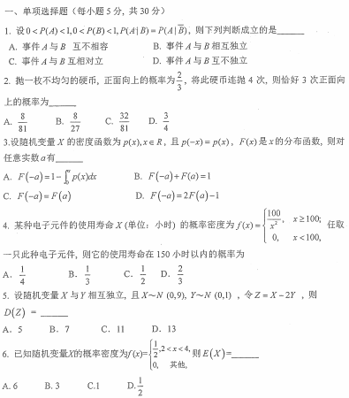 安徽师范大学考研辅导班:2018年安徽师范大学考研895概率论与数理统计真题