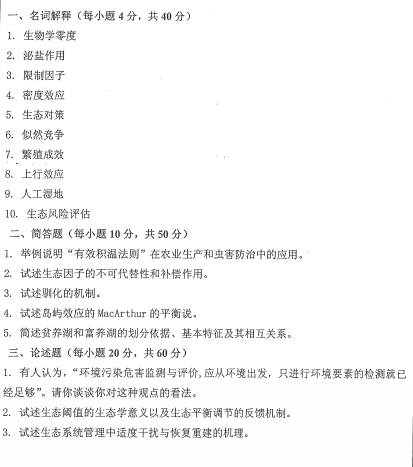 安徽师范大学考研辅导班:2018年安徽师范大学考研933生态学真题