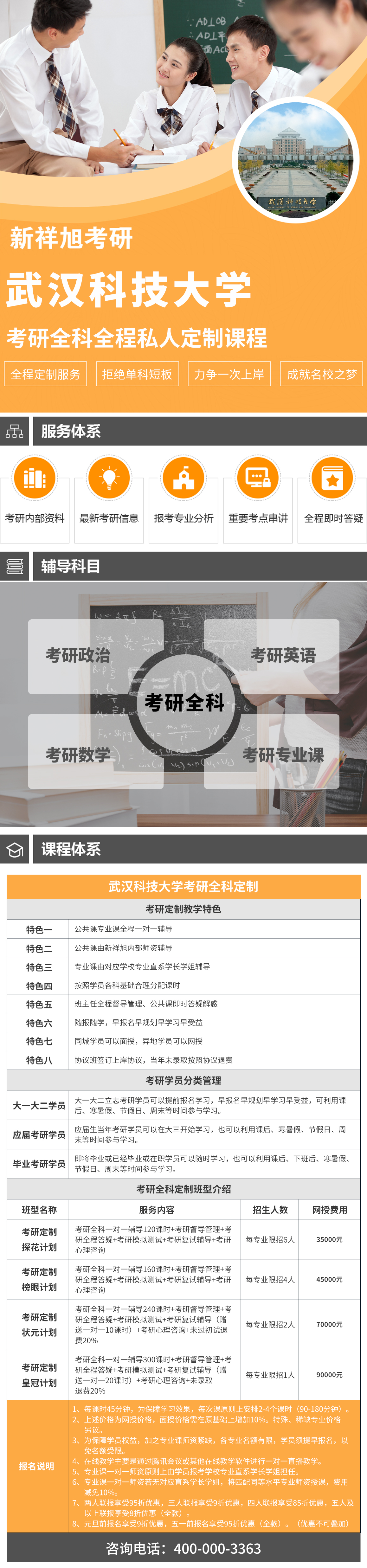 课程描述:新祥旭考研专注武汉科技大学考研全科定制辅导,以效果为导向,以上岸为目标,为广大考研学生提供个性化、定制化、多对一的考研全科全程辅导,考研公共课和考研专业课皆为一对一辅导,全国各地考研学生可以面授也可以网授,力争让考研学生顺利考取武汉科技大学攻读硕士研究生。